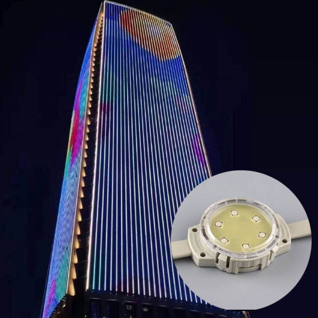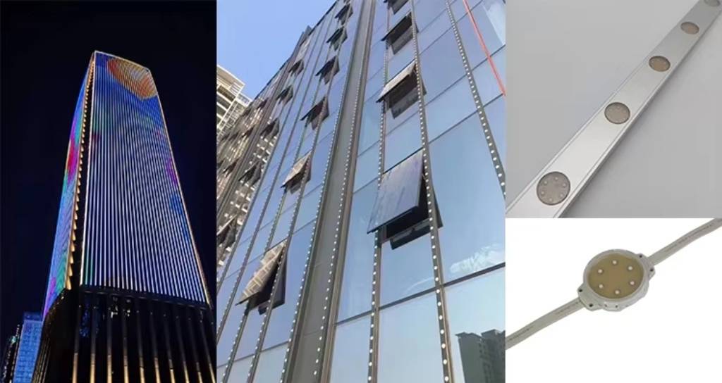 Trang trí tòa nhà: Tạo nên những dải lụa ánh sáng hoặc màn trình diễn màu sắc rực rỡ dọc theo chiều cao của các cao ốc văn phòng, khách sạn.