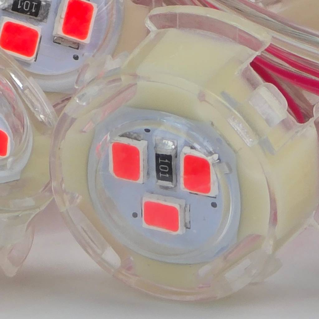 Led đúc F20 đỏ (thường được giới chuyên môn gọi là led đúc D20 đỏ) là loại đèn LED có đường kính đầu bóng 20mm. Điểm khác biệt lớn nhất nằm ở việc tích hợp 3 chip led 2835 siêu sáng bên trong một mắt LED, tạo ra luồng ánh sáng đỏ rực rỡ và có độ đâm xuyên cực tốt trong sương mù hoặc bóng tối.
