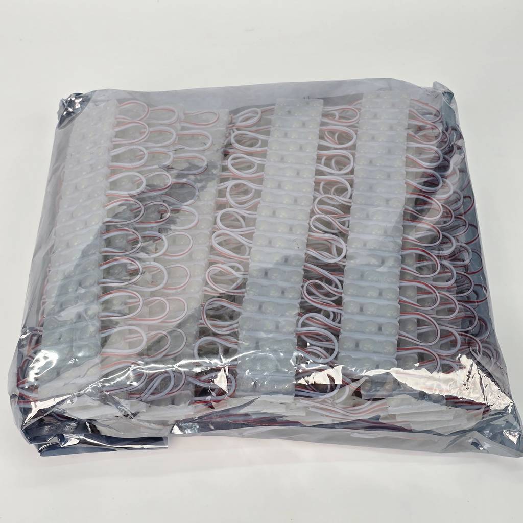 Quy cách đóng gói: Sản phẩm được kết nối thành từng dây 20 module, đóng gói 500 module trong một túi, giúp công tác quản lý kho và vận chuyển tại tổng kho Led hắt module 3 bóng trở nên thuận tiện hơn.