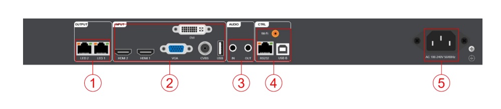 Sự đa dạng trong cổng tín hiệu đầu vào là điểm cộng lớn của Bộ xử lý hình ảnh HD VP210H WIFI. Thiết bị hỗ trợ đầy đủ các chuẩn kết nối phổ biến nhất hiện nay bao gồm 2 cổng HDMI, 1 cổng DVI, 1 cổng VGA và 1 cổng CVBS. Điều này cho phép kỹ thuật viên dễ dàng chuyển đổi nguồn phát từ Laptop đời mới, PC chuyên dụng cho đến các đầu camera analog cũ mà không cần qua các bộ chuyển đổi trung gian phức tạp, giảm thiểu suy hao tín hiệu.