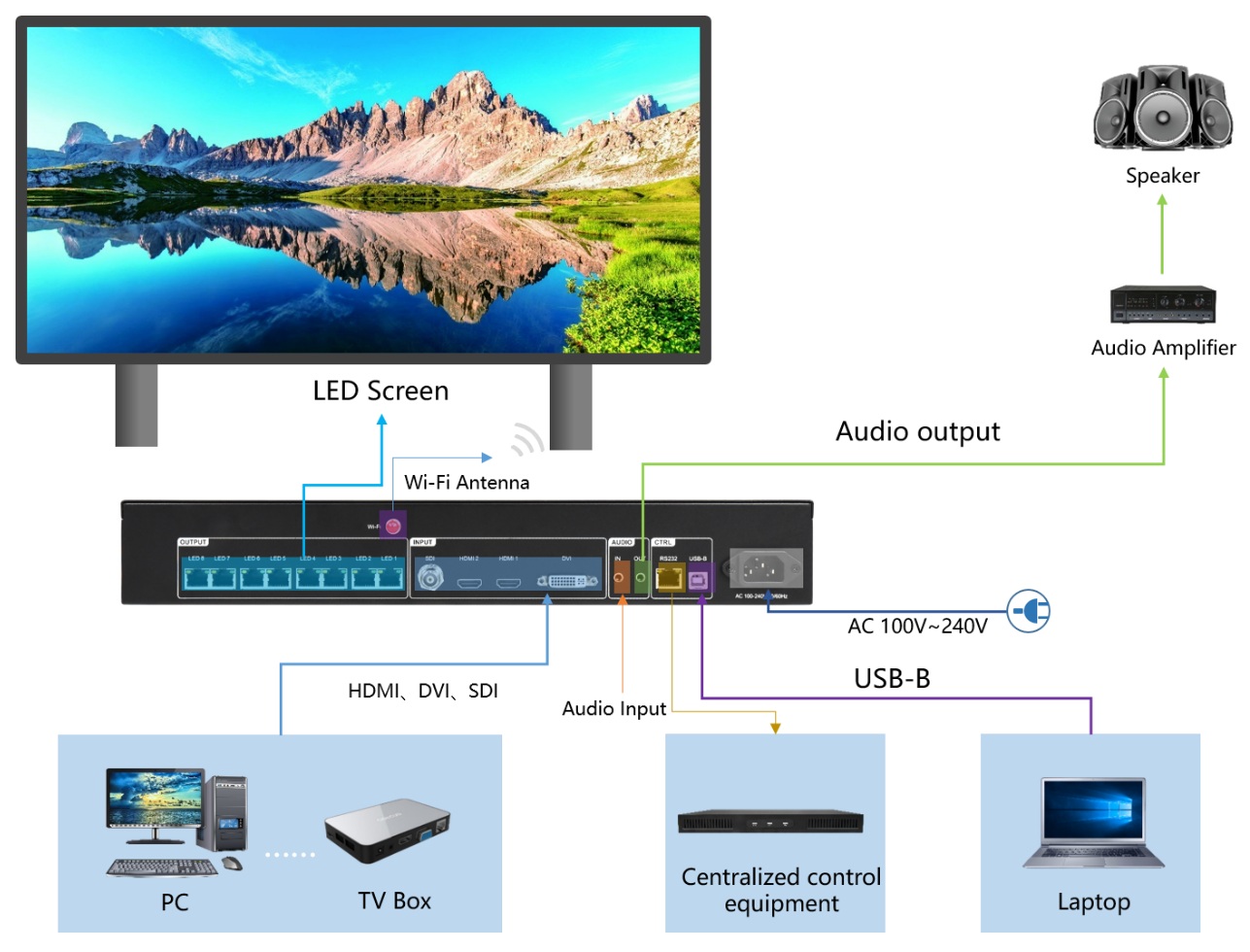 Bộ xử lý hình ảnh HD VP830 WIFI là thiết bị điều khiển màn hình LED chuyên dụng chạy online, được thiết kế để đáp ứng các tiêu chuẩn hiển thị cao cấp nhất hiện nay. Đây là phiên bản nâng cấp mạnh mẽ trong hệ sinh thái của Huidu Technology, hỗ trợ kết nối đa dạng với các thiết bị ngoại vi như máy tính đồ họa, camera quay phim chuyên dụng, đầu phát kỹ thuật số 4K, Android TV Box... nhằm hiển thị nội dung trực tiếp lên màn hình LED với độ trung thực màu sắc tuyệt đối.