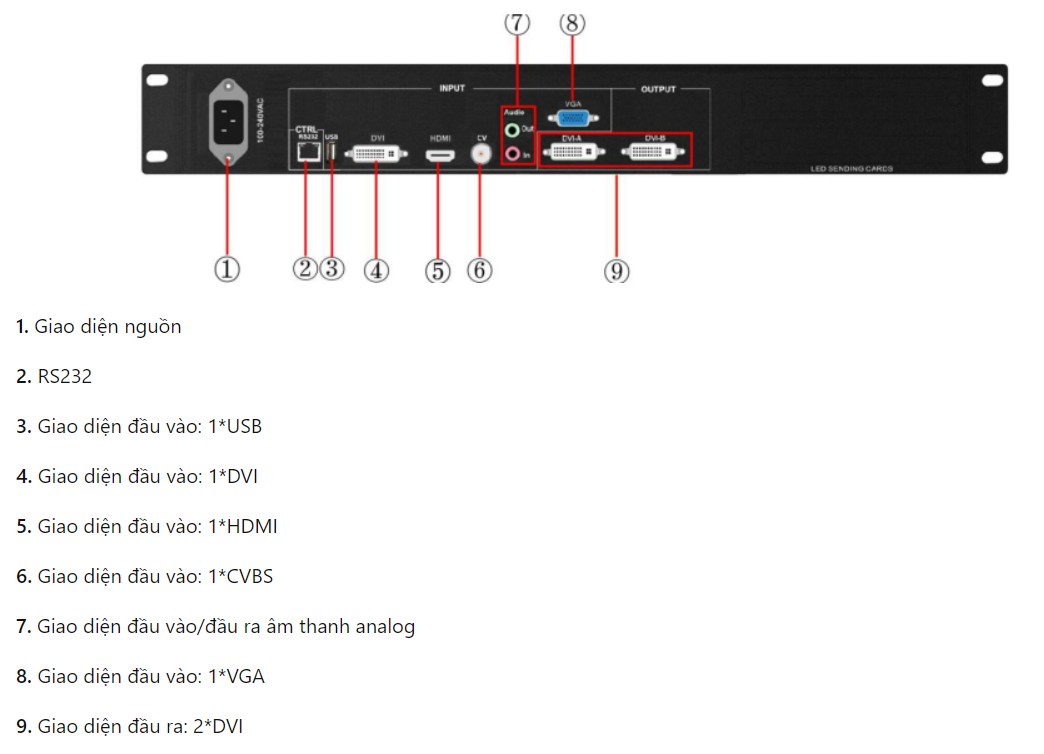 Thiết bị được trang bị 6 cổng tín hiệu đầu ra (6 x RJ45), cho phép phân chia tải trọng điểm ảnh hiệu quả, giúp màn hình hoạt động ổn định, tránh hiện tượng giật lag khi trình chiếu các nội dung chuyển động nhanh. Bên cạnh đó, với chế độ hoạt động kết hợp card thu và hỗ trợ khe cắm card phát rời, thiết bị mang lại sự linh hoạt tối đa cho kỹ thuật viên trong việc nâng cấp hoặc thay thế phần cứng.