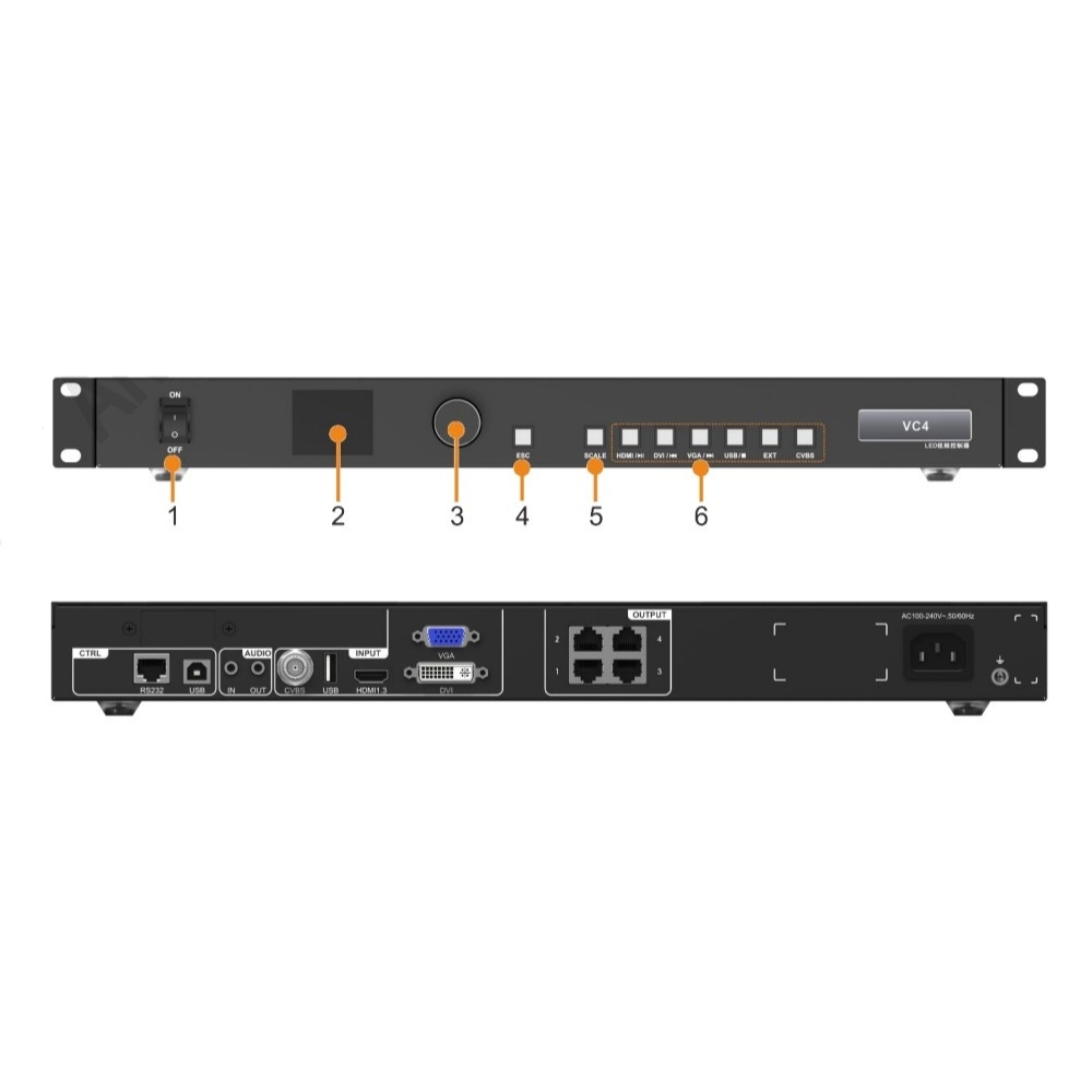 Bộ xử lý hình ảnh Novastar VC4 được thiết kế để phục vụ nhu cầu trình chiếu trực tuyến (Online) với yêu cầu cao về độ ổn định. Thiết bị hỗ trợ kết nối đa dạng với hầu hết các thiết bị ngoại vi phổ biến trên thị trường hiện nay như Máy tính (PC/Laptop), Camera quay phim chuyên dụng, Đầu phát HD, Android TV Box... Tín hiệu từ các nguồn này được xử lý và hiển thị trực tiếp lên màn hình LED với độ trễ thấp nhất.