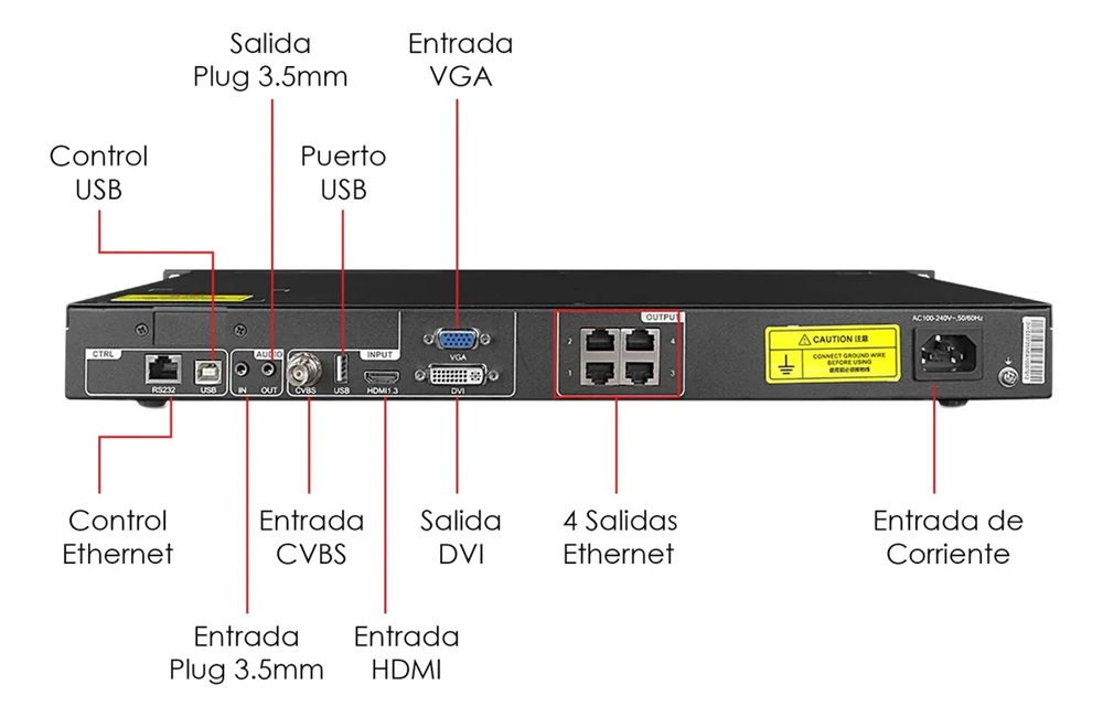 Đầu ra mạnh mẽ: 4 cổng RJ45 Gigabit đảm bảo băng thông lớn, chia tải hiệu quả cho các vùng màn hình khác nhau, đồng thời cho phép thiết lập chế độ dự phòng (Redundancy) – một yêu cầu bắt buộc trong các sự kiện trực tiếp quan trọng.