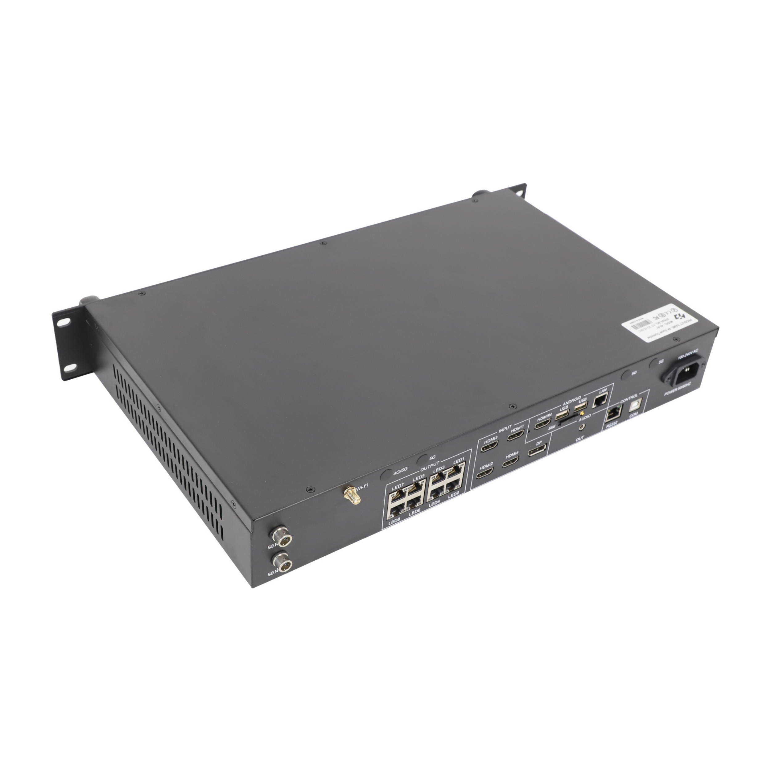 8 cổng mạng Gigabit (RJ45): Đây là điểm nhấn quan trọng, cho phép phân chia tải dữ liệu cực lớn ra 8 hướng, đảm bảo sự ổn định tuyệt đối cho các màn hình kích thước khổng lồ.