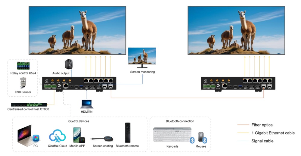 Mở rộng kết nối ngoại vi: Không chỉ dừng lại ở việc hiển thị, thiết bị hỗ trợ kết nối với hệ thống điều khiển trung tâm, camera giám sát, loa âm thanh và các loại cảm biến môi trường, biến màn hình LED thành một thiết bị IoT thông minh thực thụ trong sảnh khách sạn, phòng triển lãm hay trung tâm thương mại.