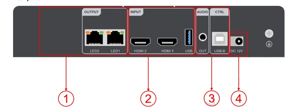 Box HD-KV210 được trang bị 2 cổng mạng Gigabit (RJ45) đầu ra, đảm bảo tín hiệu truyền tải ổn định đến hệ thống card thu. Cổng Audio OUT tích hợp cho phép xuất âm thanh đồng bộ ra hệ thống loa, tạo nên trải nghiệm nghe nhìn trọn vẹn. Cổng USB-B dùng để kết nối với máy tính phục vụ cho việc cấu hình thông số (Debug) một cách nhanh chóng.