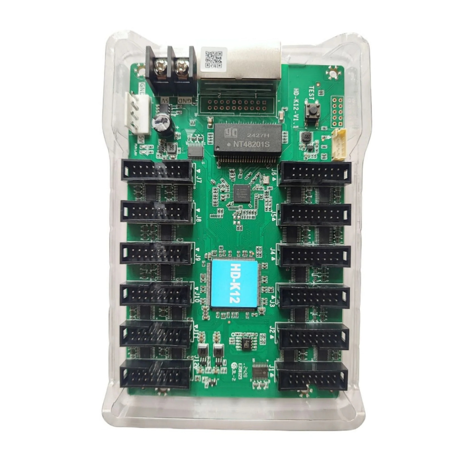 Card thu HD K12 là một mạch điều khiển LED hiệu suất cao đến từ thương hiệu Huidu (HD) danh tiếng. Giống như các sản phẩm khác trong hệ sinh thái HD, nó được thiết kế để hoạt động ổn định, bền bỉ và tương thích hoàn hảo với các thiết bị xử lý trung tâm.