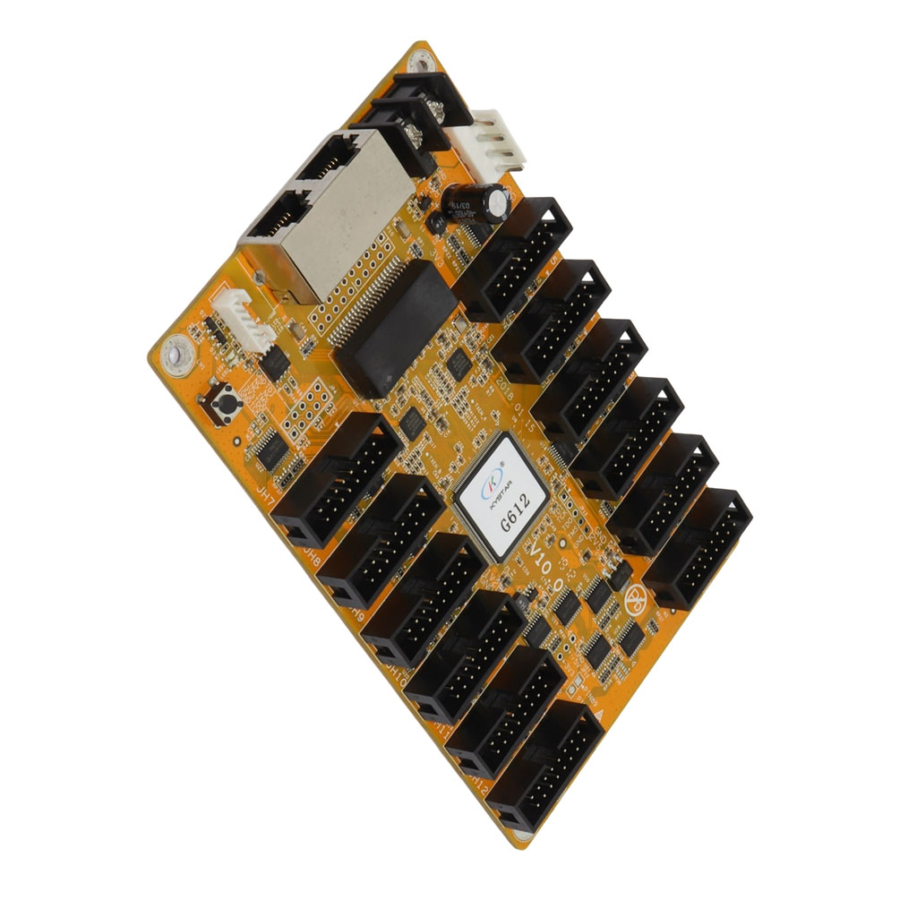 So với chuẩn 8 cổng phổ biến, 12 cổng giao tiếp mang lại sự linh hoạt vượt trội. Một cabinet LED tiêu chuẩn thường chứa 8, 9 hoặc 12 module. Với G612, bạn có thể chỉ cần dùng một card duy nhất để điều khiển toàn bộ cabinet, thay vì phải dùng hai card 8 cổng hoặc các giải pháp phức tạp hơn. Điều này không chỉ giúp tiết kiệm chi phí mua card mà còn tối ưu hóa không gian, giảm độ phức tạp của hệ thống dây tín hiệu và tăng cường độ ổn định chung.
