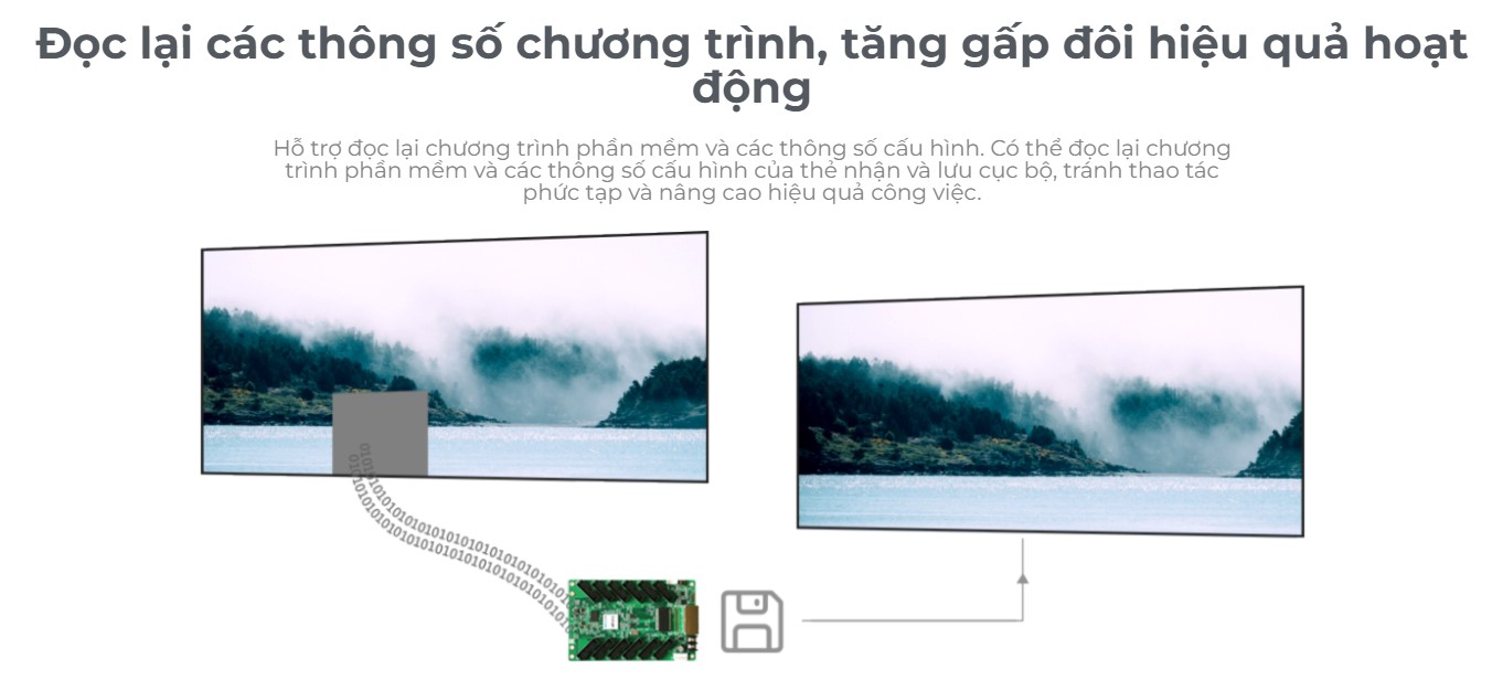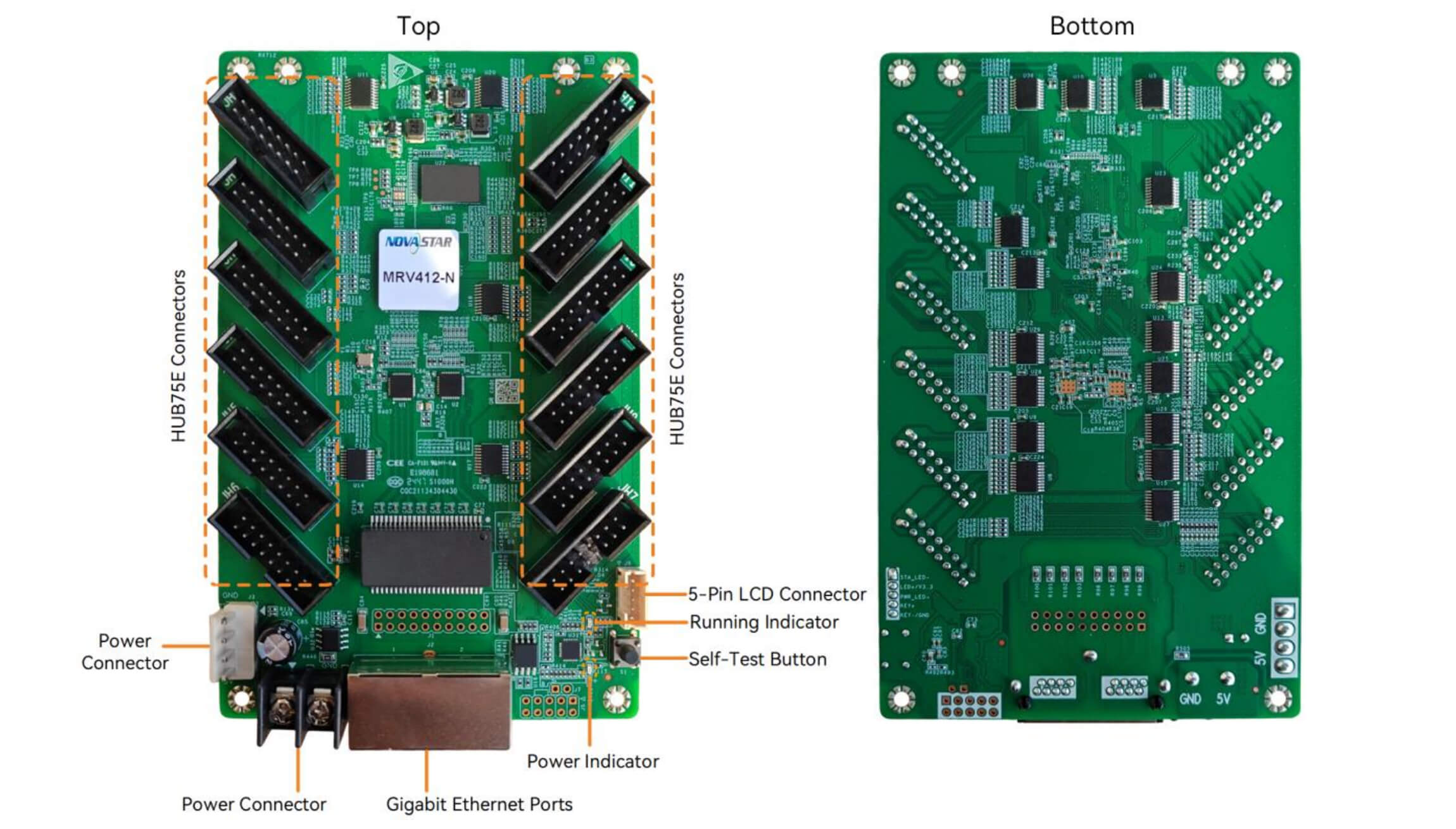 Kết nối nhiều card: Trong một màn hình 4K hoặc 8K, bạn có thể phải dùng đến hàng trăm, thậm chí hàng nghìn card MRV412-N. Chúng được kết nối nối tiếp với nhau, và phần mềm NovaLCT sẽ tự động nhận diện, cho phép bạn cấu hình một màn hình khổng lồ như một thể thống nhất, liền mạch.