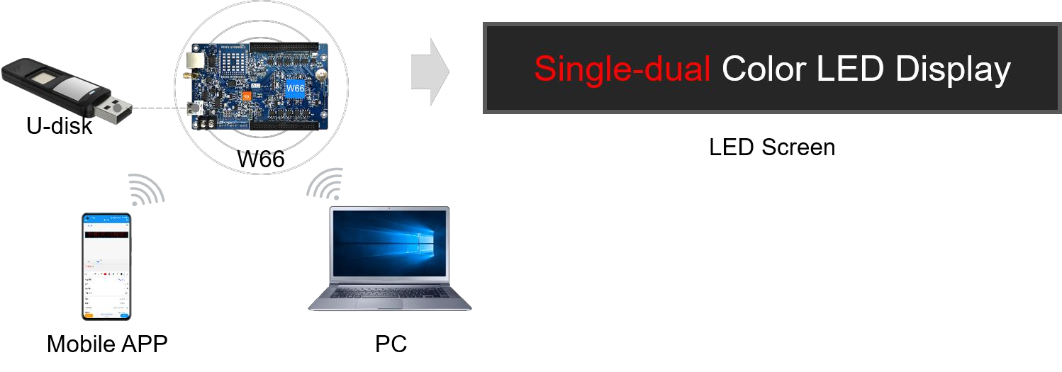 Trọng tâm của giải pháp này chính là khả năng hiển thị "Full màu". Đây là một sự khác biệt cơ bản so với các loại mạch điều khiển đơn sắc hay ba màu. Hệ thống W66 có khả năng xử lý và tái tạo hàng triệu màu sắc, cho phép hiển thị các dải màu chuyển (gradient) mượt mà, các hình ảnh sản phẩm chân thực, logo thương hiệu với đúng tông màu đặc trưng, và các hiệu ứng hoạt hình nhiều màu sắc. Mặc dù được tối ưu hóa cho các nội dung đồ họa và hình ảnh động (không phải video thời gian thực), nó hoàn toàn đáp ứng được trên 90% nhu cầu của các màn hình quảng cáo số hiện đại, từ các bảng hiệu mặt tiền, menu điện tử, đến các màn hình trong trung tâm thương mại.