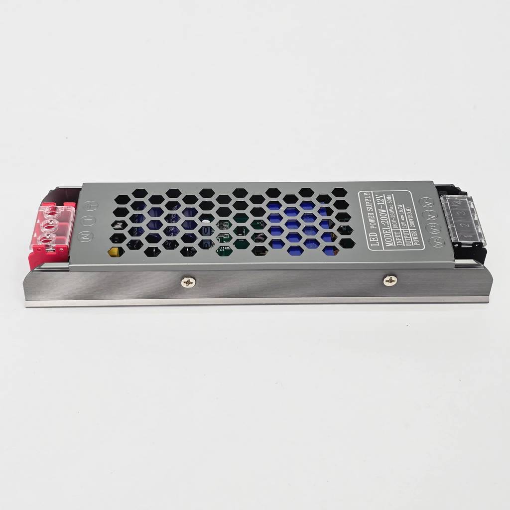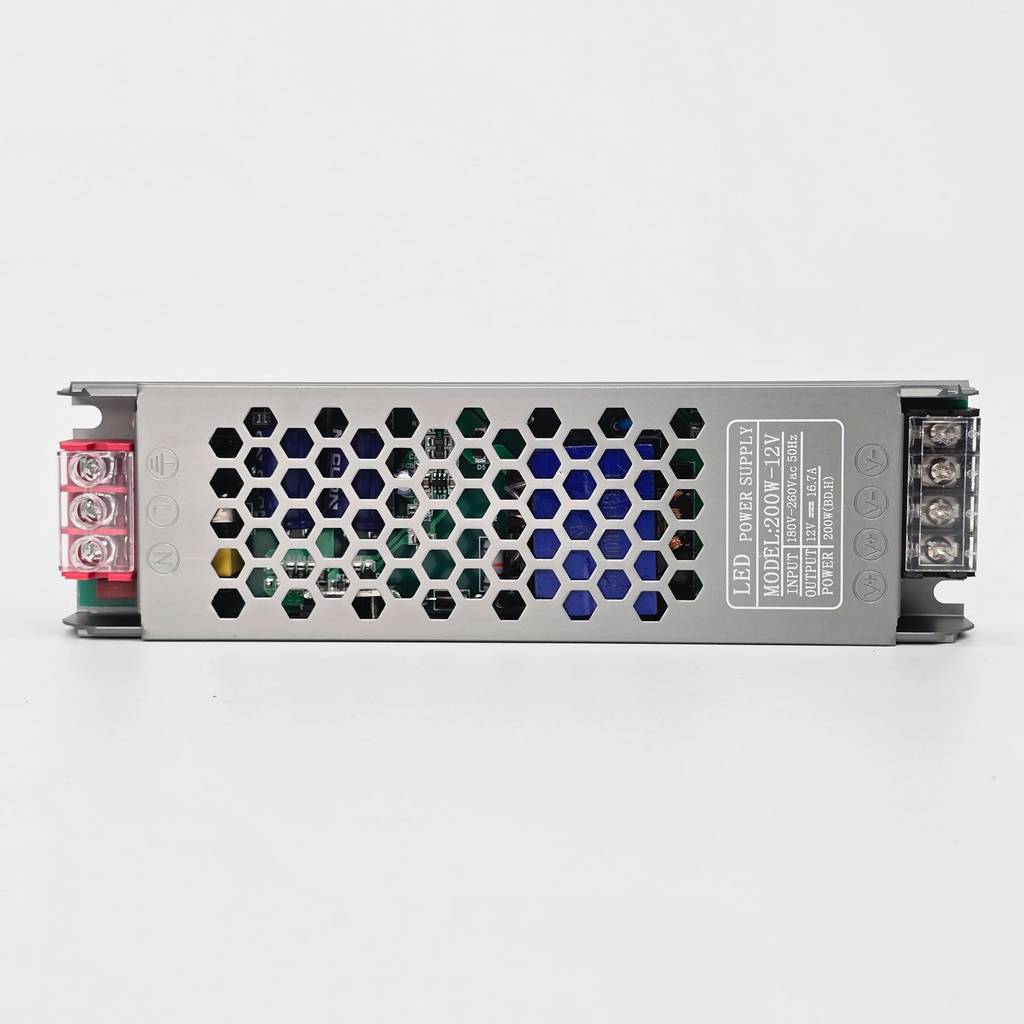 Một bộ nguồn chất lượng phải đáp ứng được dải điện áp đầu vào linh hoạt. Thiết bị này hoạt động trong khoảng từ 180V đến 260VAC, giúp thích nghi tốt với sự trồi sụt của lưới điện tại nhiều khu vực khác nhau. Đầu ra 12V DC được duy trì phẳng, ít nhiễu, bảo vệ chip LED khỏi tình trạng nhấp nháy hoặc giảm tuổi thọ. Với công suất 200W, đây là lựa chọn lý tưởng khi cần gánh một lượng lớn LED dây hoặc các bảng hiệu có mật độ bóng dày đặc.