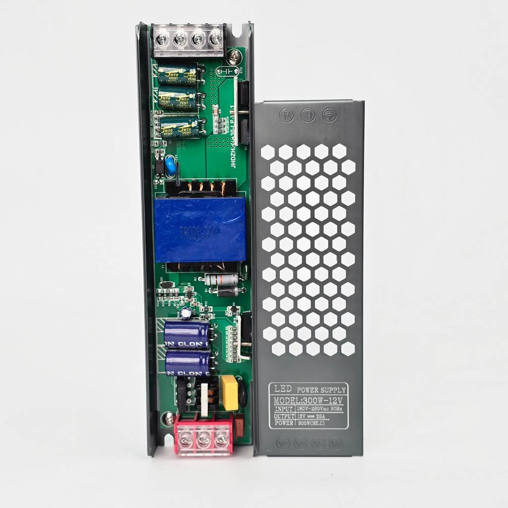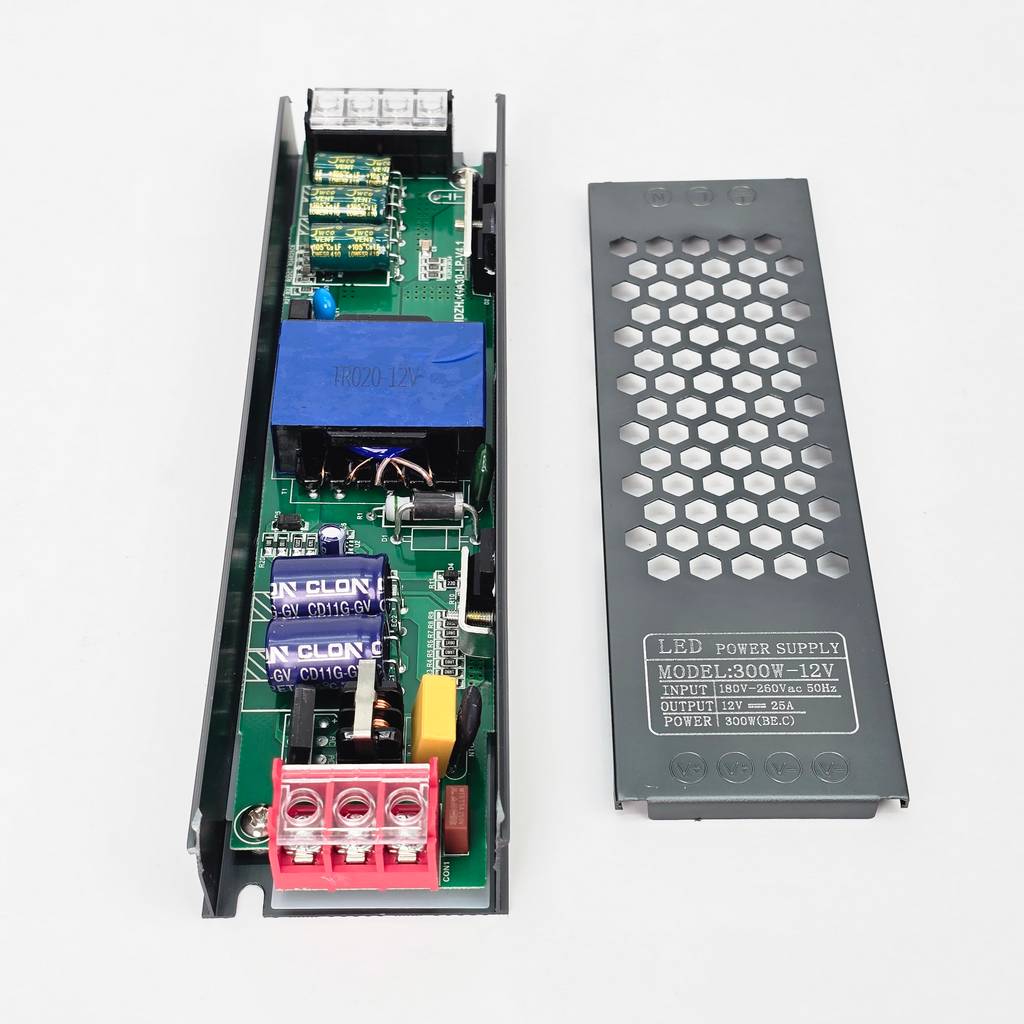 Với dòng điện định mức 25A, bộ nguồn này cho phép tải cùng lúc một lượng lớn LED dây hoặc các loại LED module mà không xảy ra hiện tượng sụt áp ở cuối đường dây. Việc duy trì mức áp 12V phẳng và sạch là yếu tố sống còn để kéo dài tuổi thọ của chip LED, ngăn chặn tình trạng nhấp nháy (flicker) – một vấn đề thường gặp khi sử dụng các bộ nguồn rẻ tiền kém chất lượng. Công suất 300W được tính toán dư tải để có thể vận hành liên tục trong thời gian dài mà vẫn đảm bảo độ bền cơ học và điện tử.