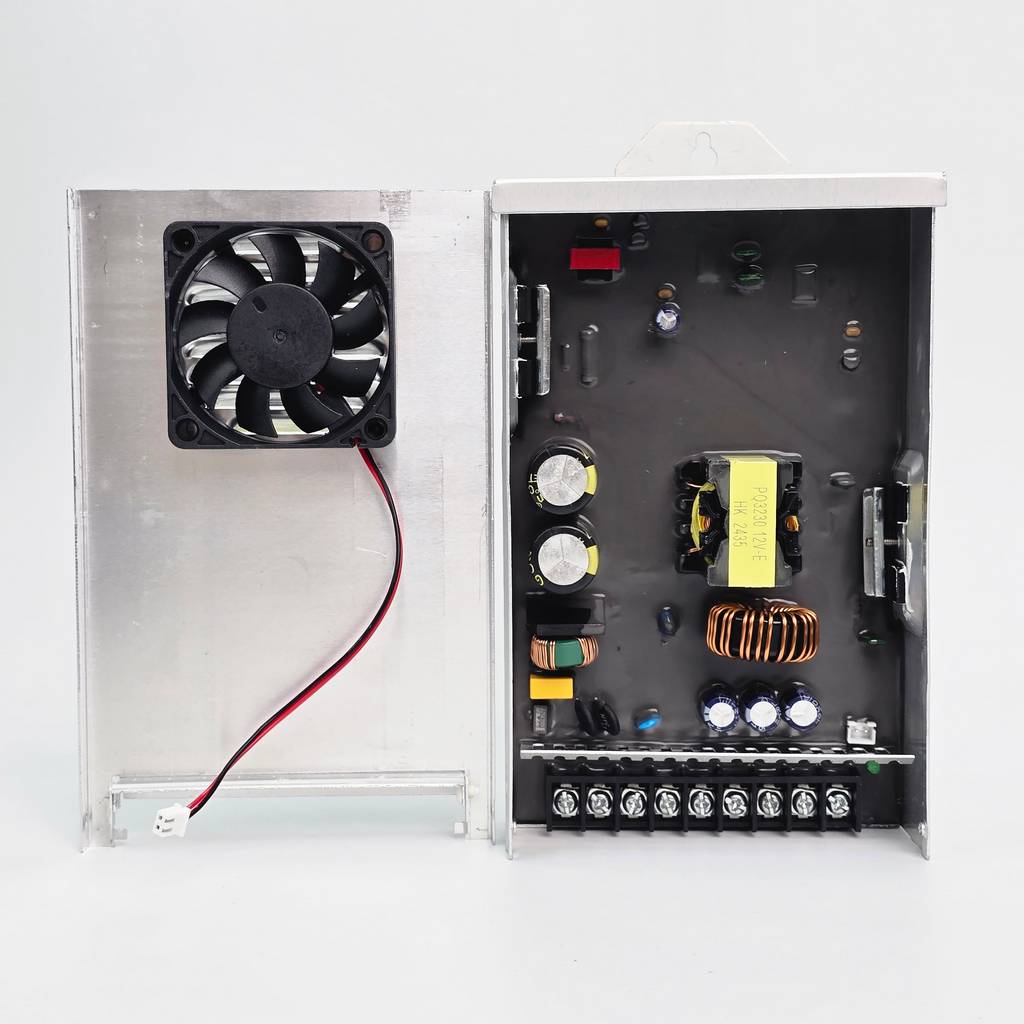 Vỏ thiết bị được làm từ sắt cao cấp, sơn tĩnh điện, mang lại sự chắc chắn và khả năng tản nhiệt tự nhiên tốt. Với kích thước 185 x 115 x 40 mm và trọng lượng lên tới 900g, sản phẩm thể hiện sự đầu tư kỹ lưỡng vào biến áp và các khối tụ điện bên trong. Quạt tản nhiệt tích hợp giúp luồng không khí luôn được lưu thông, làm mát trực tiếp các khu vực sinh nhiệt cao. Thiết kế này cực kỳ phù hợp cho các ứng dụng yêu cầu hoạt động 24/7 như biển quảng cáo khổ lớn, hệ thống chiếu sáng tòa nhà hay camera giám sát an ninh tại các kho bãi. Với thời hạn bảo hành 12 tháng, đây chính là sự cam kết về chất lượng và sự đồng hành của hãng đối với mọi khách hàng.