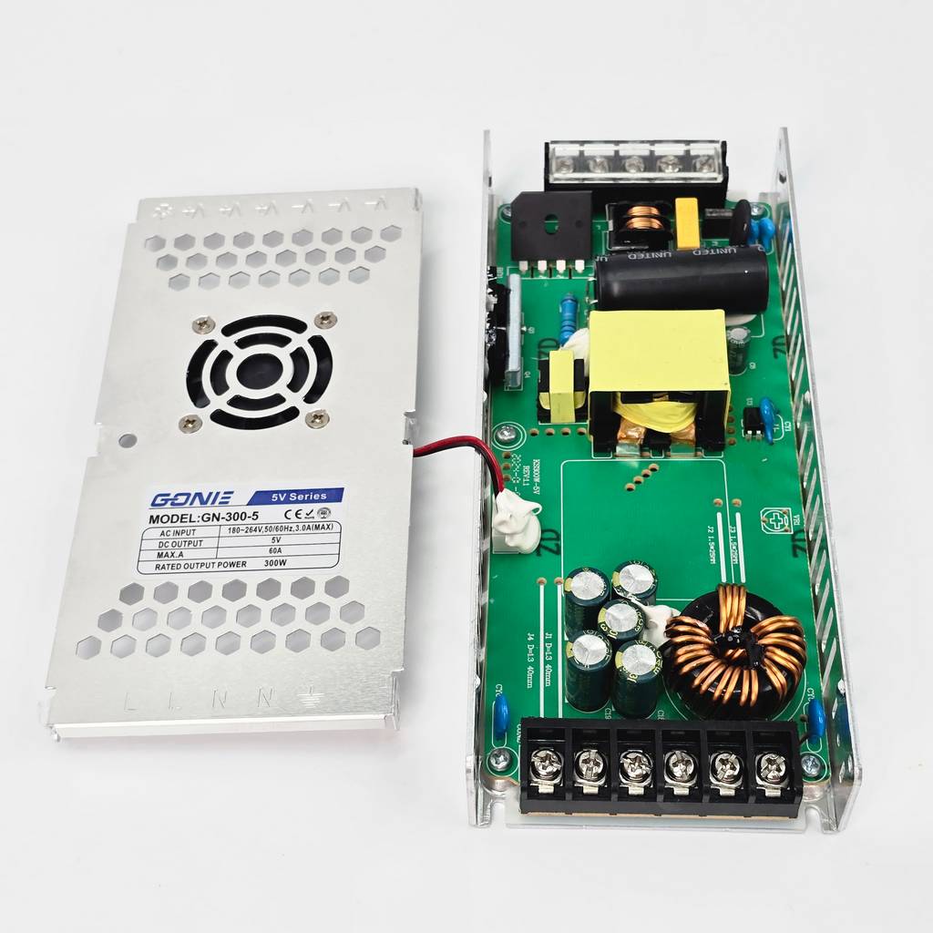 Nguồn LED 5V 60A GONIE là thiết bị chuyển đổi điện năng AC-DC (Switching Power Supply) thuộc phân khúc hiệu suất cao. Thiết bị này đảm nhận nhiệm vụ chuyển đổi dòng điện xoay chiều từ lưới điện dân dụng (AC) sang dòng điện một chiều (DC) ở mức điện áp 5V an toàn. Điểm đặc biệt của dòng sản phẩm này nằm ở khả năng cung cấp dòng tải cực đại lên tới 60 Ampe, tương đương với công suất thực khoảng 300W. Đây được xem là "trái tim" cung cấp năng lượng dồi dào cho các hệ thống chiếu sáng và hiển thị kỹ thuật số đòi hỏi sự khắt khe về tính ổn định của dòng điện.