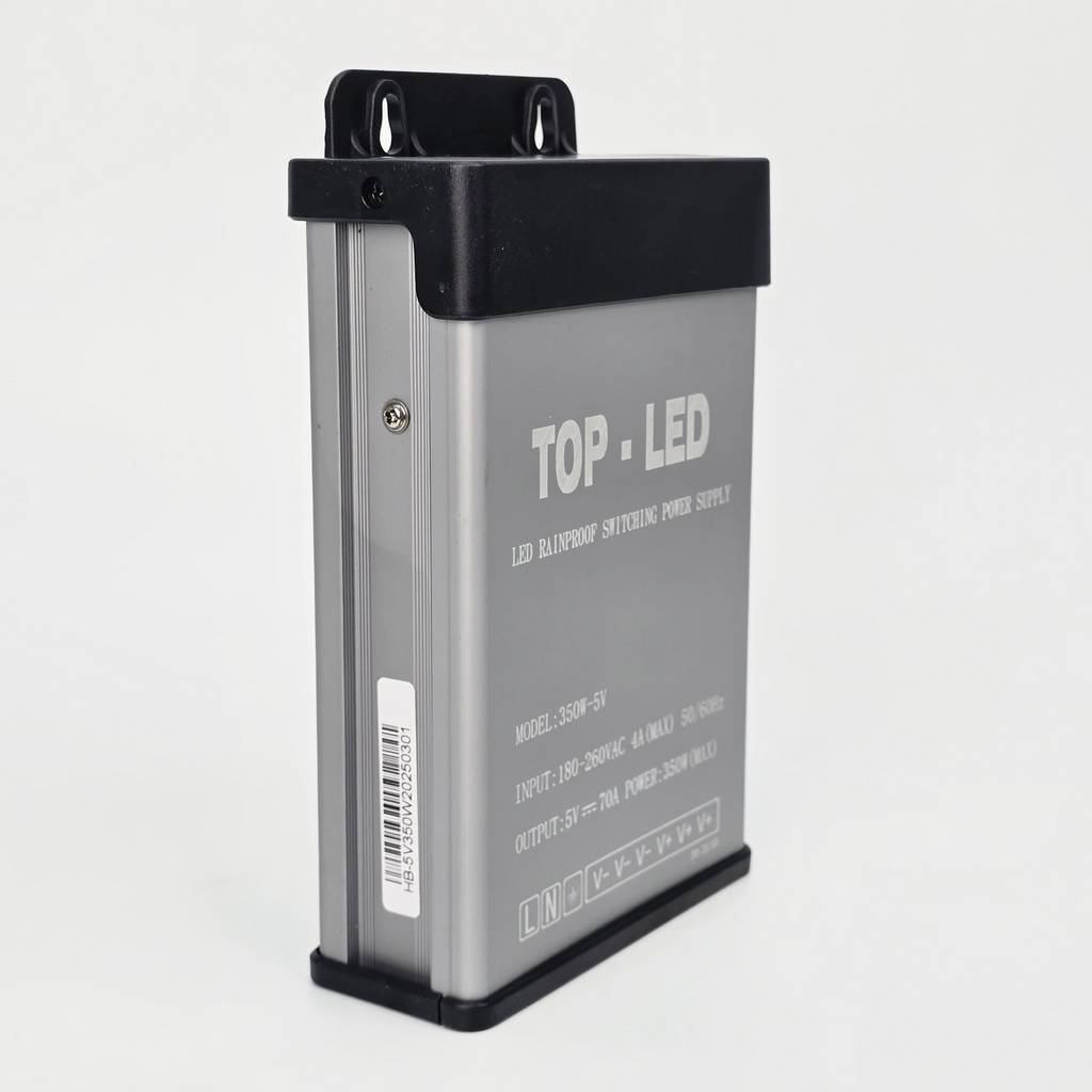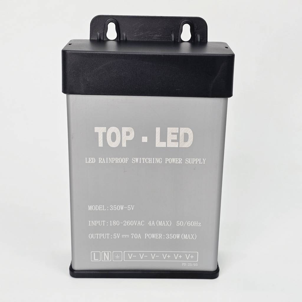 Nguồn LED 5V 70A TOP là thiết bị có khả năng chống nước mưa, chuyển đổi điện áp từ nguồn xoay chiều (AC) dân dụng sang điện áp một chiều (DC) 5V với cường độ dòng điện lên tới 70A. Đây không đơn thuần là một cục biến áp, mà là một hệ thống mạch điện tử công suất cao (350W) được thiết kế chuyên biệt để vận hành các loại module LED, LED đúc và trang trí đòi hỏi dòng tải lớn và độ ổn định khắt khe.