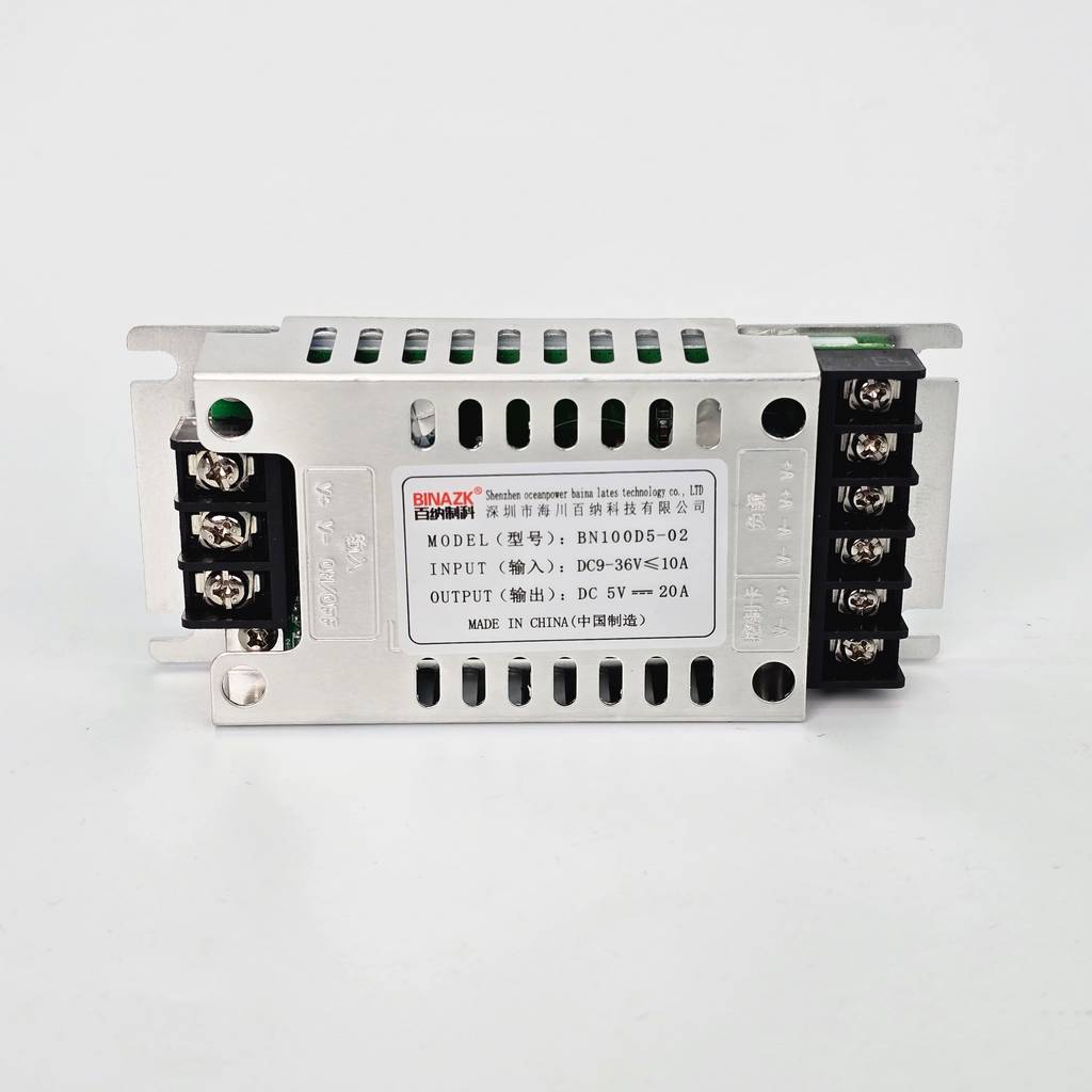 Nguồn ô tô 5V 20A BINAZK là bộ biến áp xung hạ áp (Buck Converter) chuyên dụng. Thiết bị này thực hiện chức năng chuyển đổi dải điện áp đầu vào dao động từ 12V hoặc 24V (từ hệ thống ắc quy xe) thành điện áp đầu ra cố định ở mức 5V với cường độ dòng điện lên tới 20A.